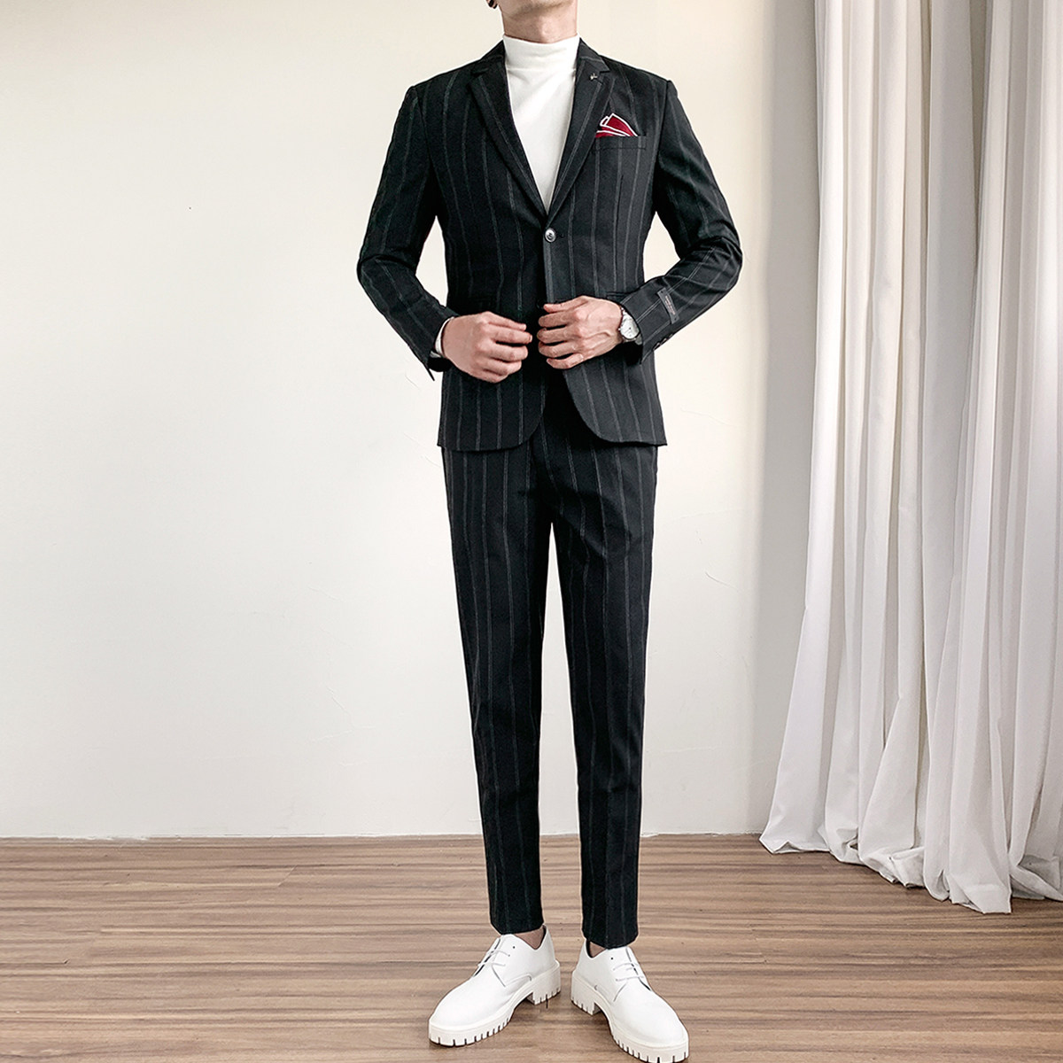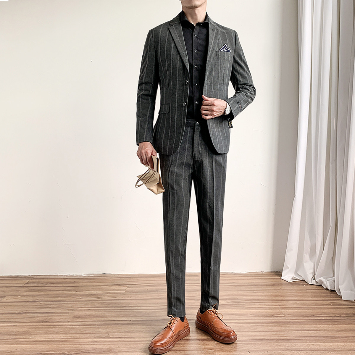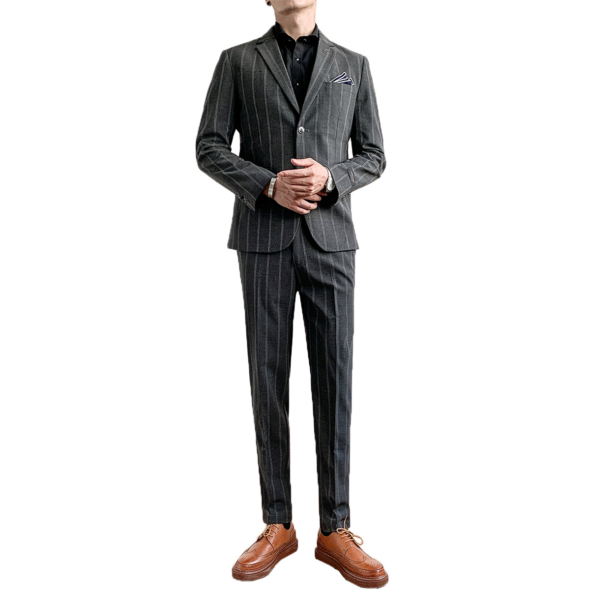 Spring and autumn striped suit suit men's two sets Korean version for business and casual positive dress groom wedding gown