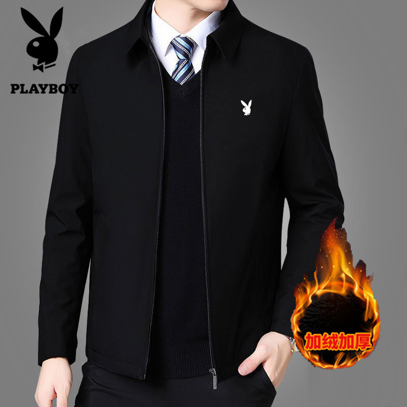 Playboy middle-aged men's business fleece jacket autumn and winter casual top 40 years old 50 jacket dad wear
