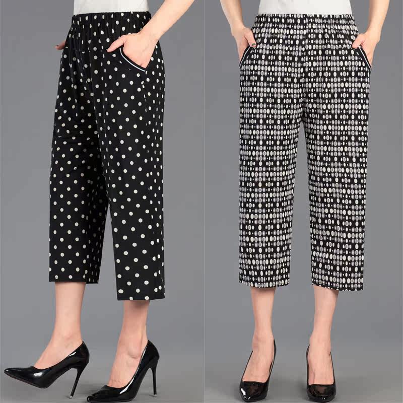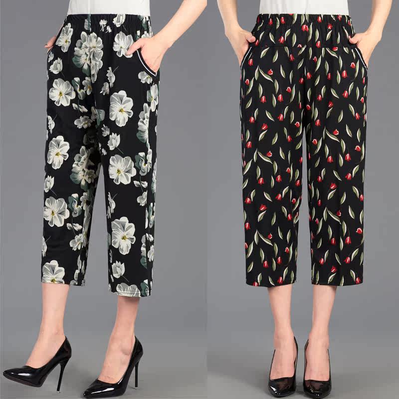 Mom spends thin pants thin summer seven-point pants loose waist loose middle-aged and elderly woman elastic mother-in-law casual pants