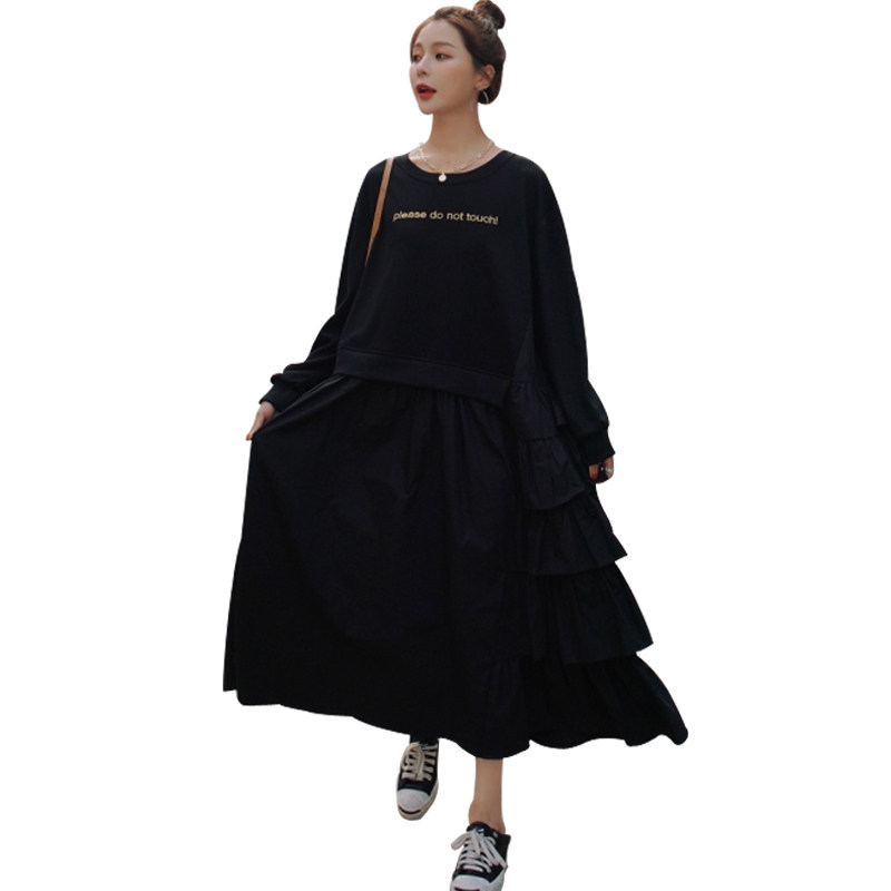 Pregnant women spring dress 2023 new Han Mom Fashion Fashion Fake two loose dresses long sleeve bottom dress