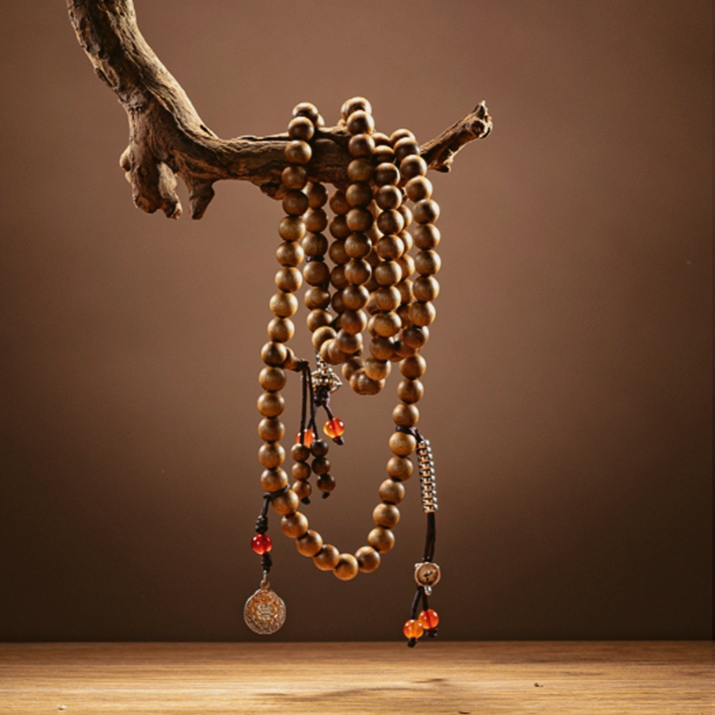 Sichuan Golden Silk Nanmuyang Sinking Wood Bracelet 108 Wooden Beads 8mm Water Corrugated Wood Bead Necklace Disc Play Bracelet