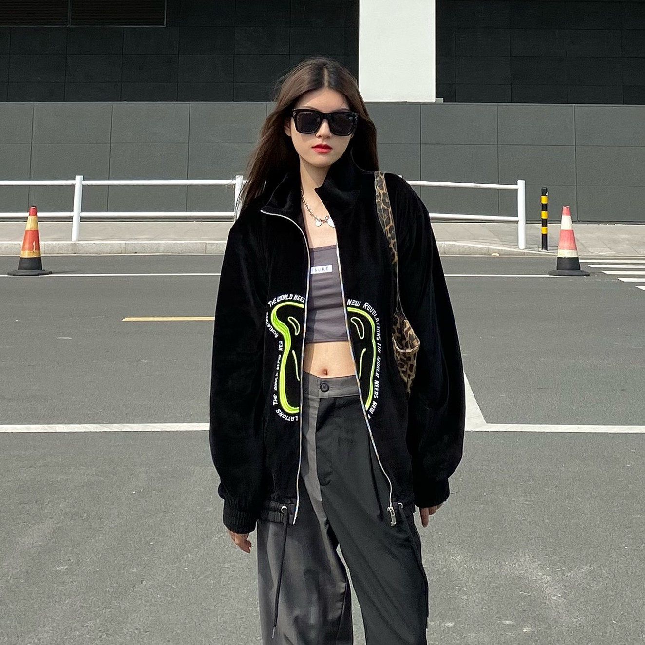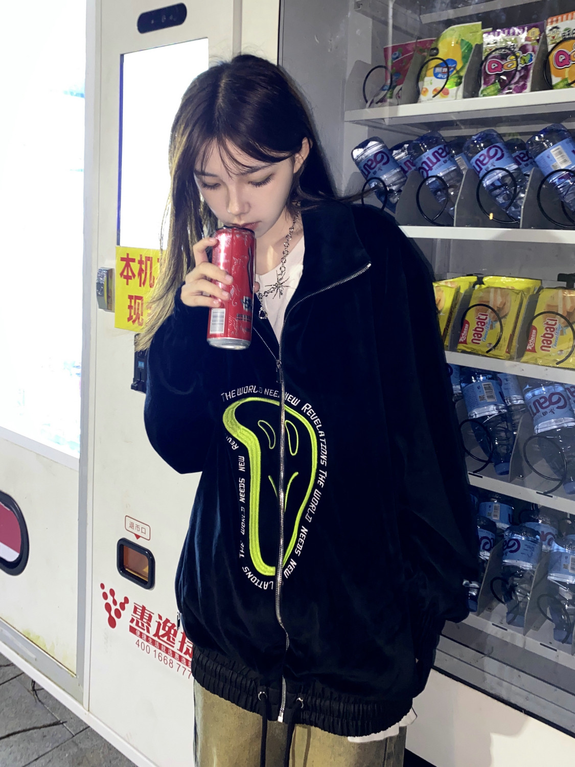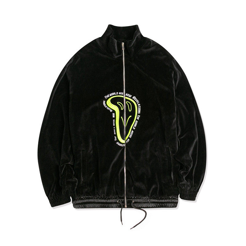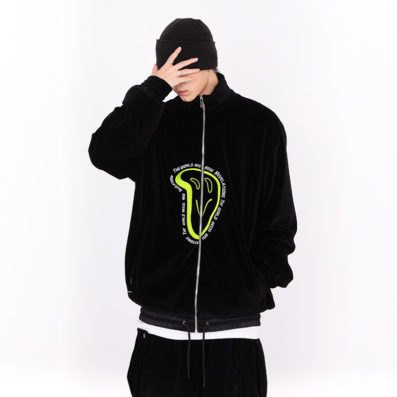 NSTNEW START Dali Time Distorted Embroidered Smiley Gold Velvet Jacket National Tide Brand Hip Hop Thickened Jacket