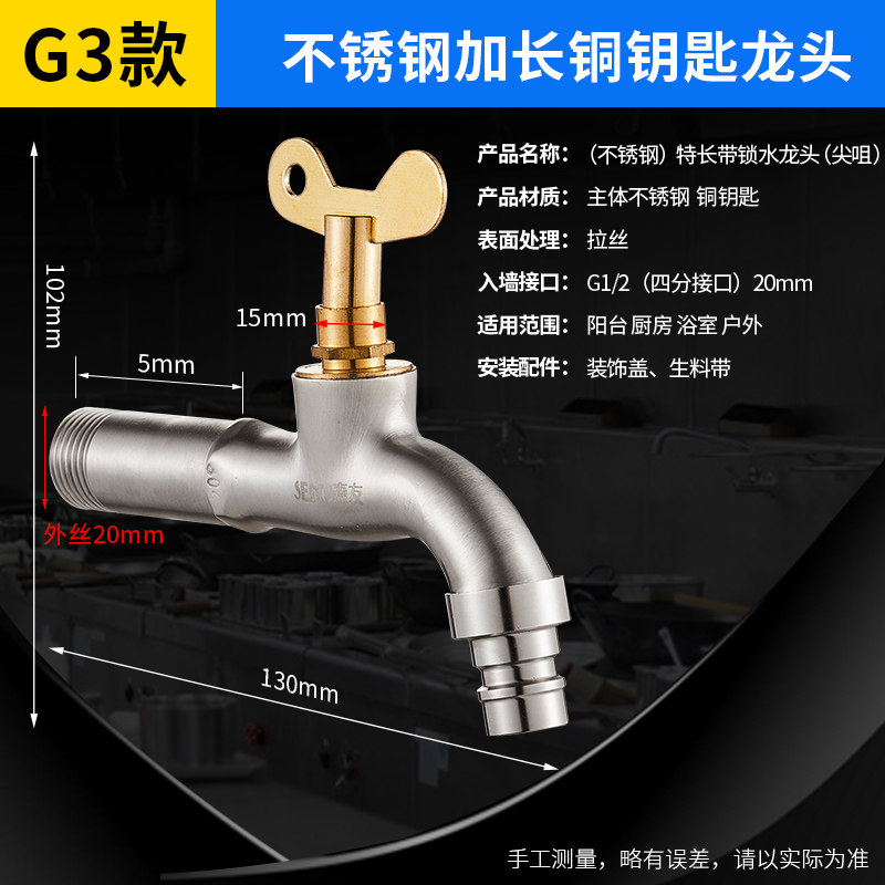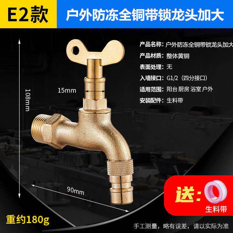 All copper outdoor with lock faucet copper key does not rust stainless steel extended washing machine anti-theft water anti-children play water