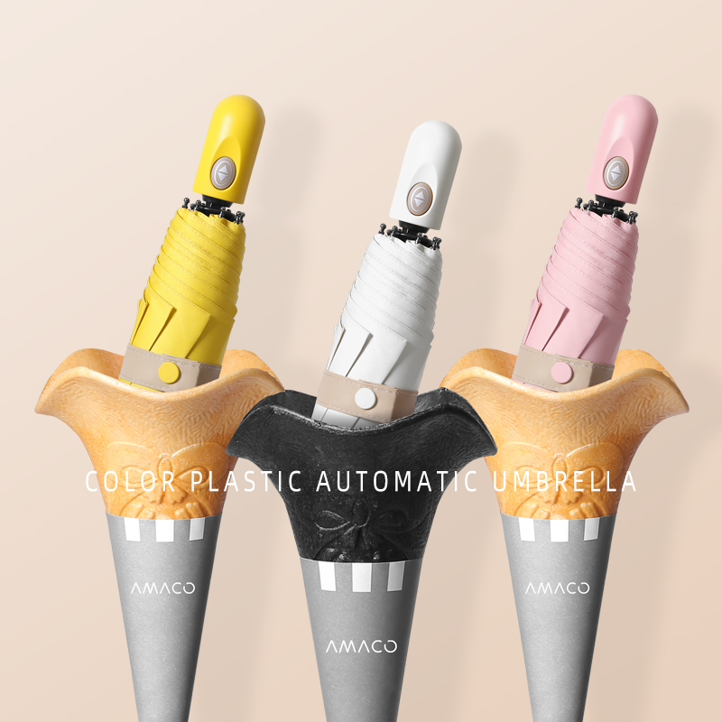 Fully automatic pure color glue umbrella folding increase sun umbrella sunscreen ultraviolet sunscreen men and women rain and shine umbrella