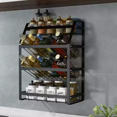 Black seasoning jar rack soy sauce bottle kitchen rack seasoning tank rack multi-layer non-perforated countertop sauce storage layer rack