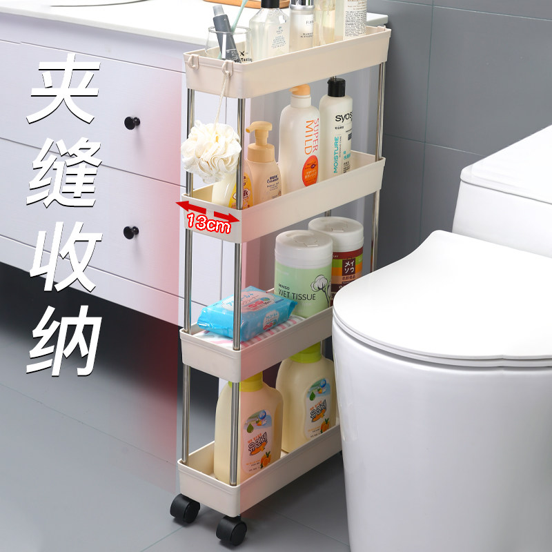 Makeup room clamp plate frame white bathroom refrigerator narrow gap side of kitchen floor cart