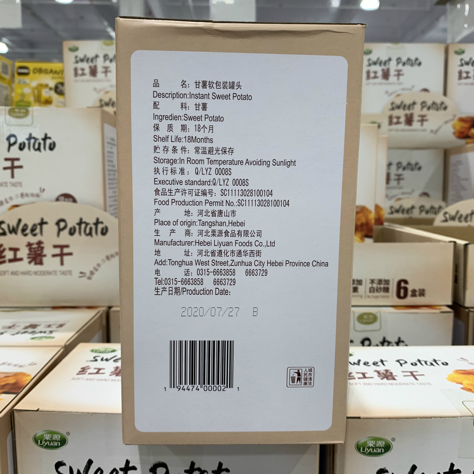 The barcode of the goods: