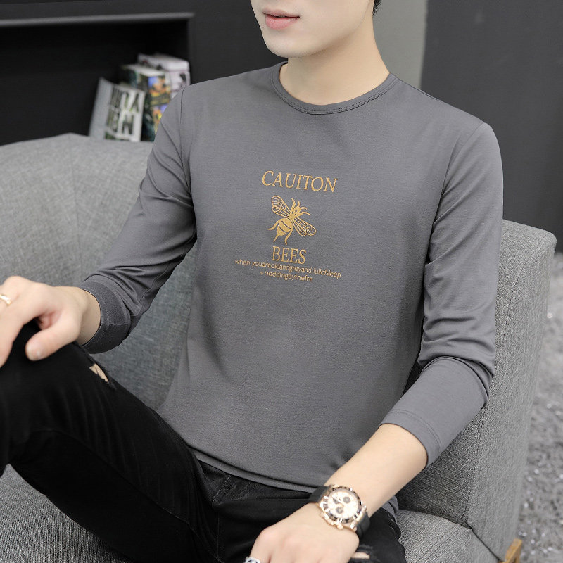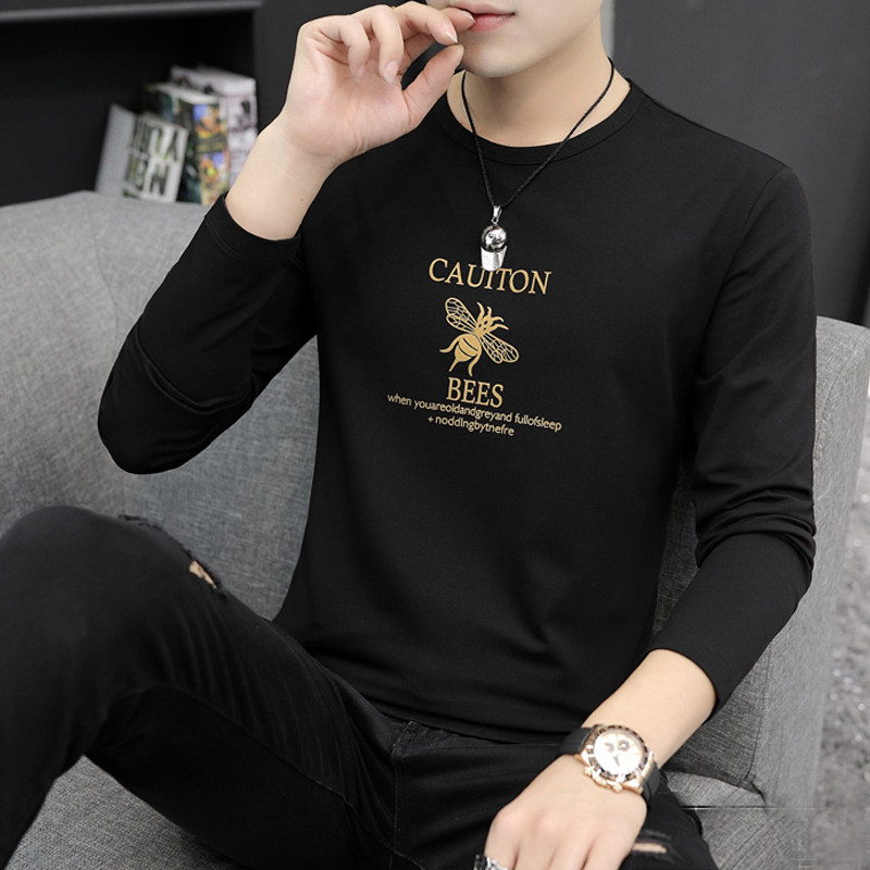 Long-sleeved t-shirt men's autumn Korean style trendy printed sweater with bottoming shirt T-shirt pure cotton round neck top clothes cx