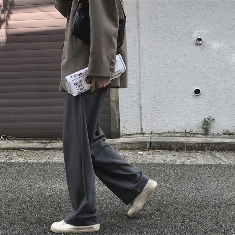 Spring sag gray wide leg pants women slim high waist black mop pants loose casual suit pants straight pants