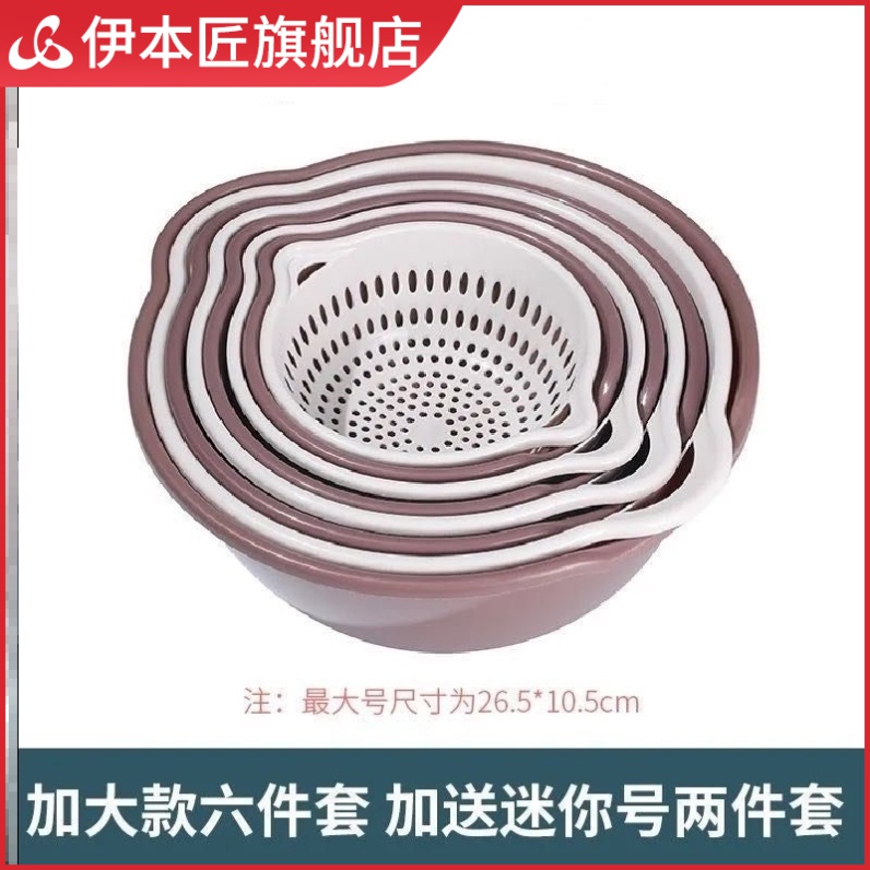 Six pieces of double layer plastic washing basin draining basket home kitchen washing vegetable basket creative washing vegetable naughty food basket drawing room