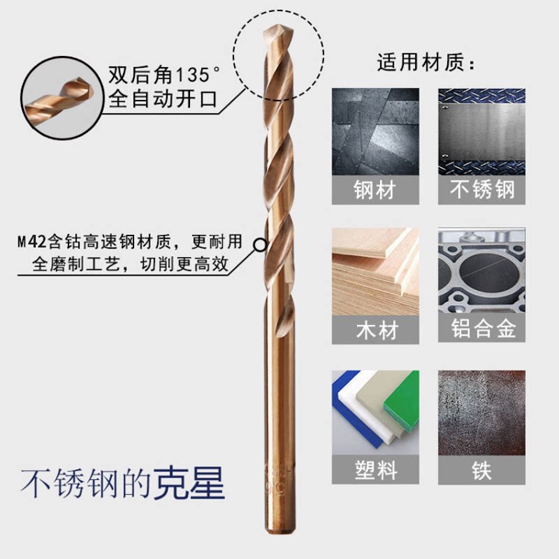 Saint Lidel imported cobalt-containing drill high-cobalt straight drill stainless steel special drill bit M42 super hard twist drill 1-13mm