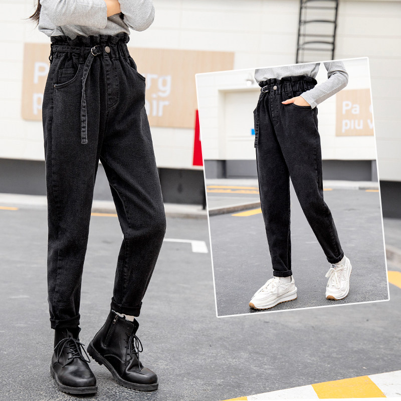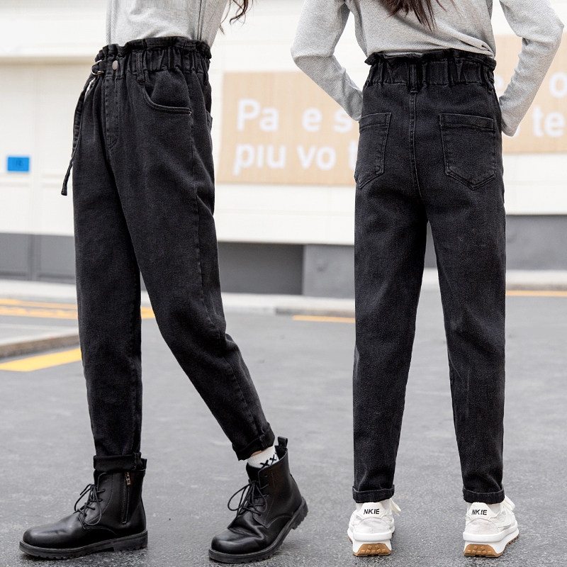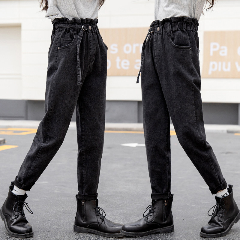 Girls spring and autumn jeans trousers Korean version loose in the big children's thin harem pants junior high school students autumn trousers tide