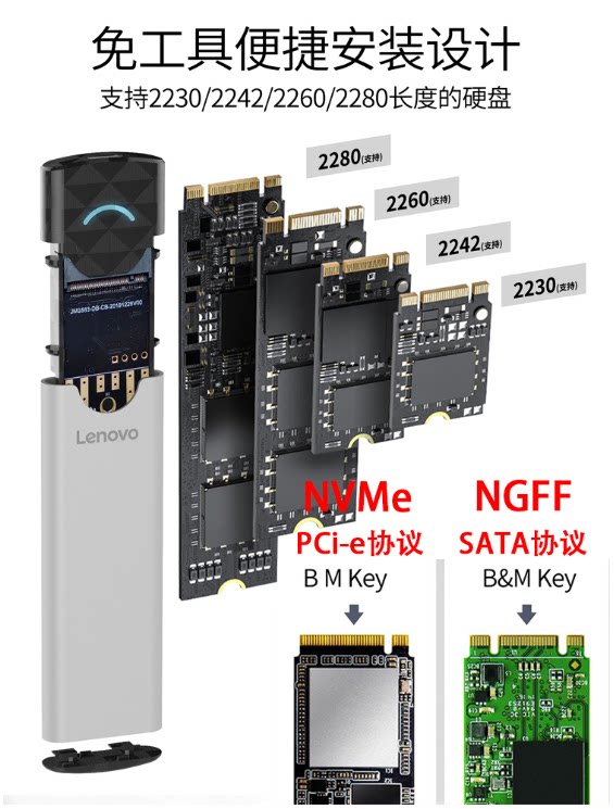 Lenovo Lenovo M 2 Hard disc box NGFF Mobile NVME external link m2 Solid ssd external typec Universal sata notebook 2242 computer changed 228