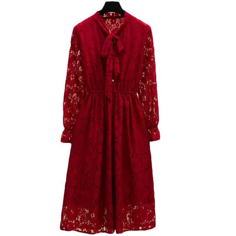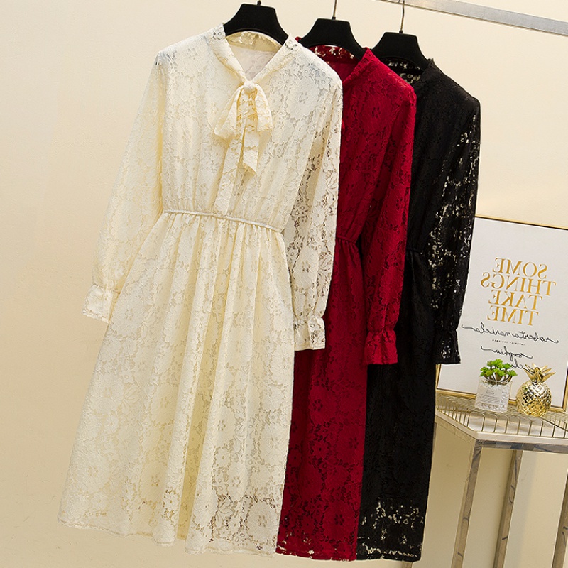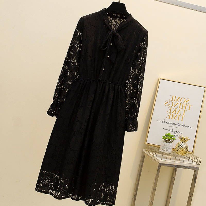 2020 Fall Fat Sister Expaise to lean on waist butterfly knot Ribbon Lace Fried Street Fat Mm Design Sensical Dress
