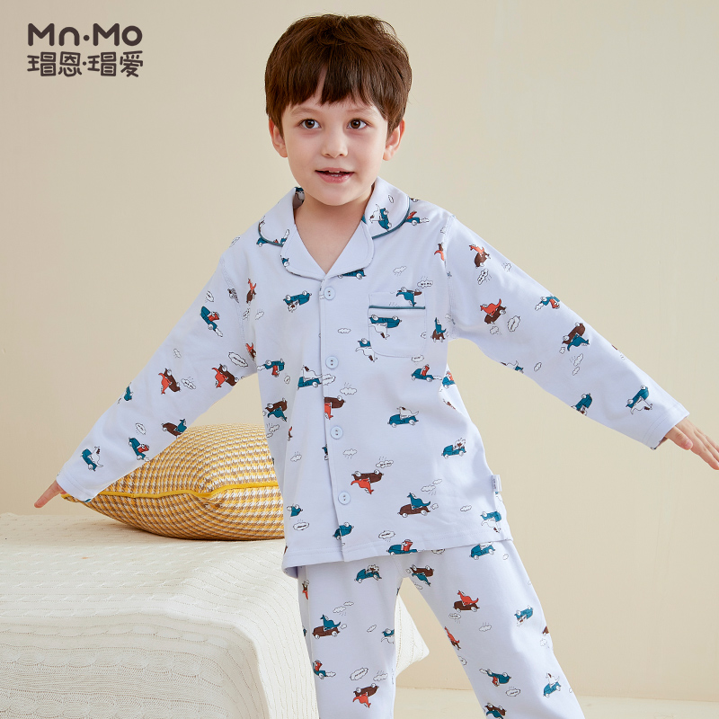 Turtle Nen Turtle Love Spring Boy Sleepwear Pants Sets Pure Cotton Open Flap Jacket Cartoon Long Sleeve Kinder Fashion
