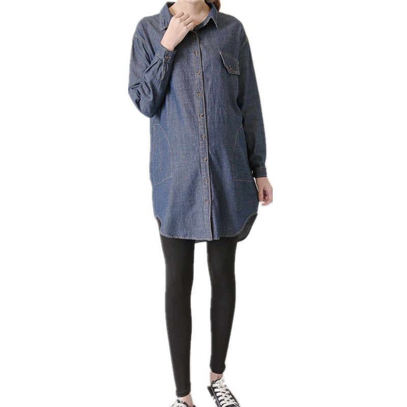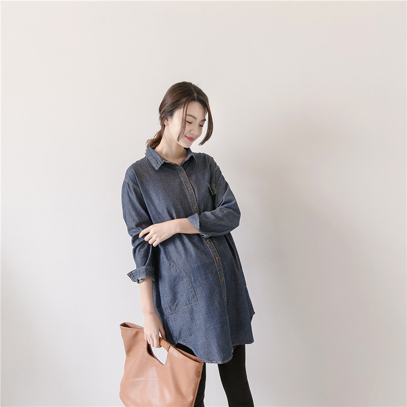 Spring new Korean maternity wear loose thin mid-length dress fat MM shirt foreign denim shirt tide