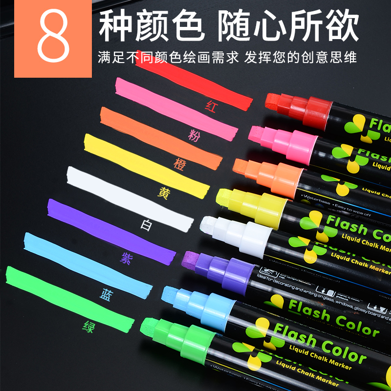 Fluorescent board special pen LED electronic luminescent blackboard highlighter whiteboard water-based erasable billboard silver light glass plate color thick head marker pen student with marker pen blackboard color pen set