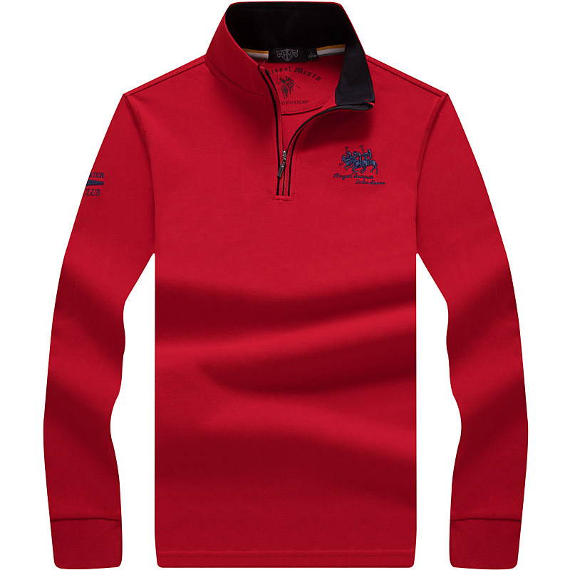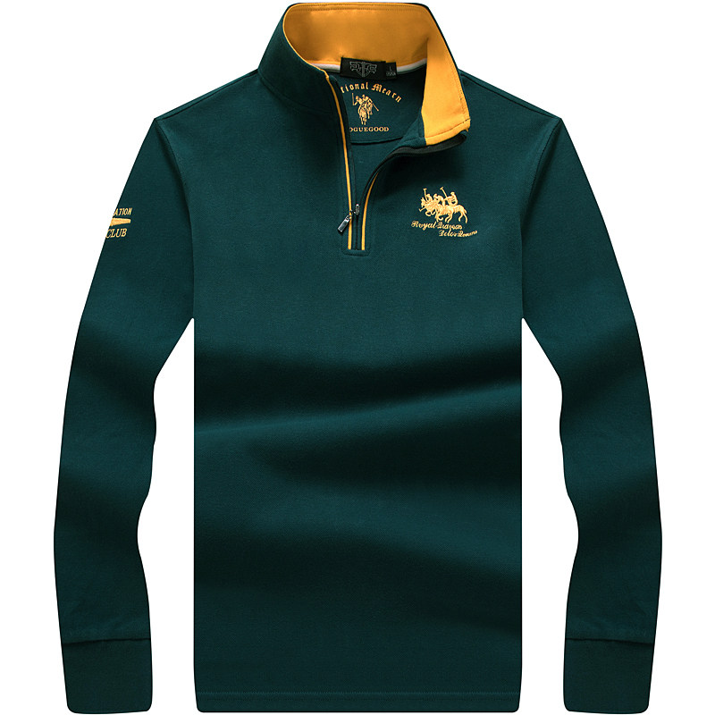 Men Long Sleeve T-shirt Spring Autumn Pure Cotton Inner lap Collar Trend Polo Shirt Business Casual Middle-aged Clothes Embroidery