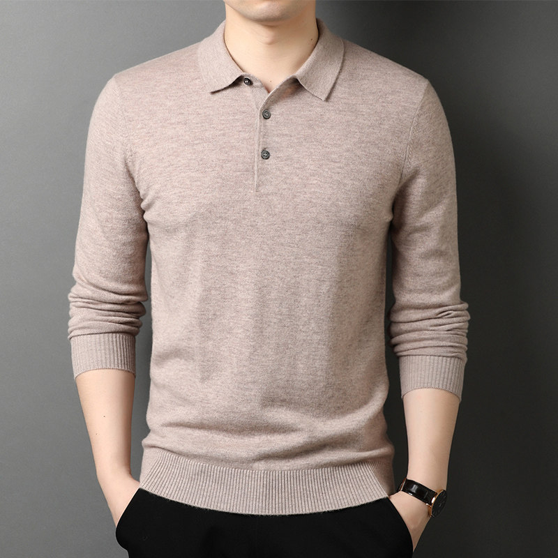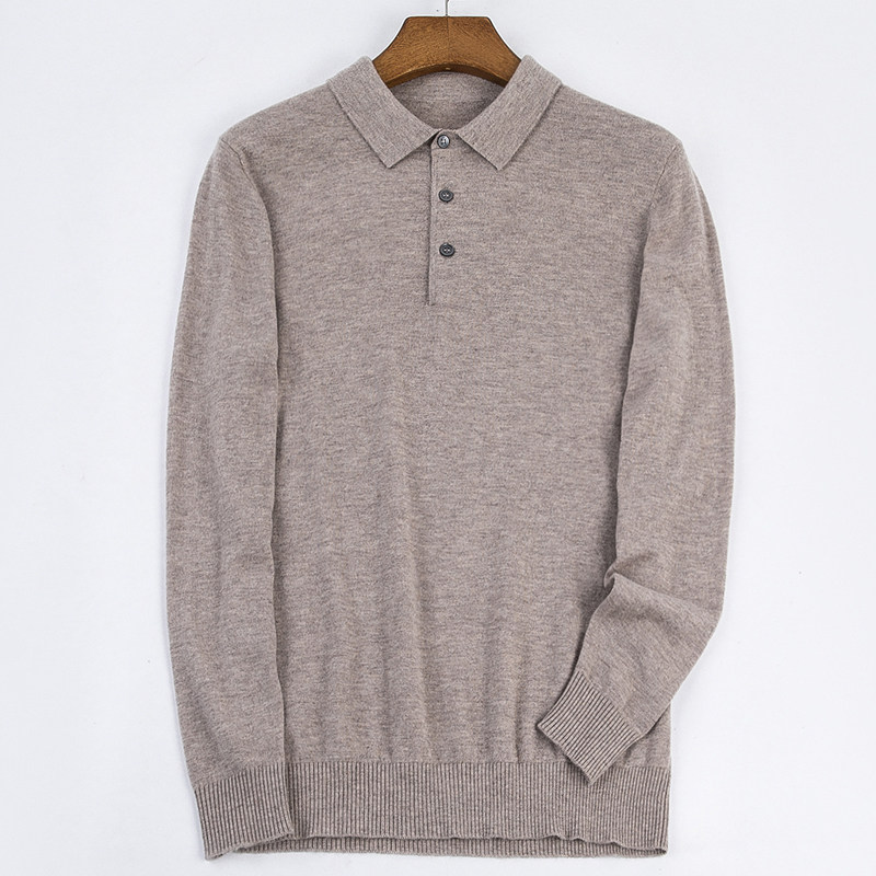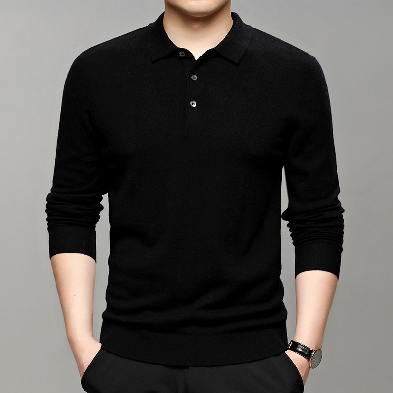 Fall/winter new 100% pure Kashmir sweater men's lapel thin middle-aged knitted cashmere sweater base sweater