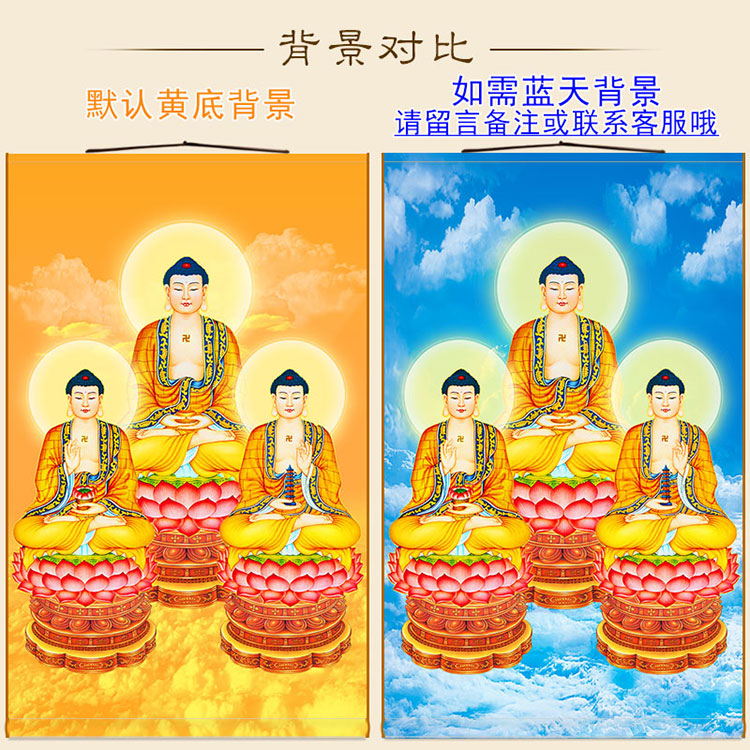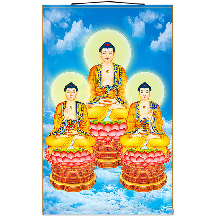 Three Trilateral Buddhotomatics Buddhist Buddha Buddha Statue Buddha Statue Buddha Painting of the Buddha Tang Scroll Paintings of Three Paver Hanging Paintings