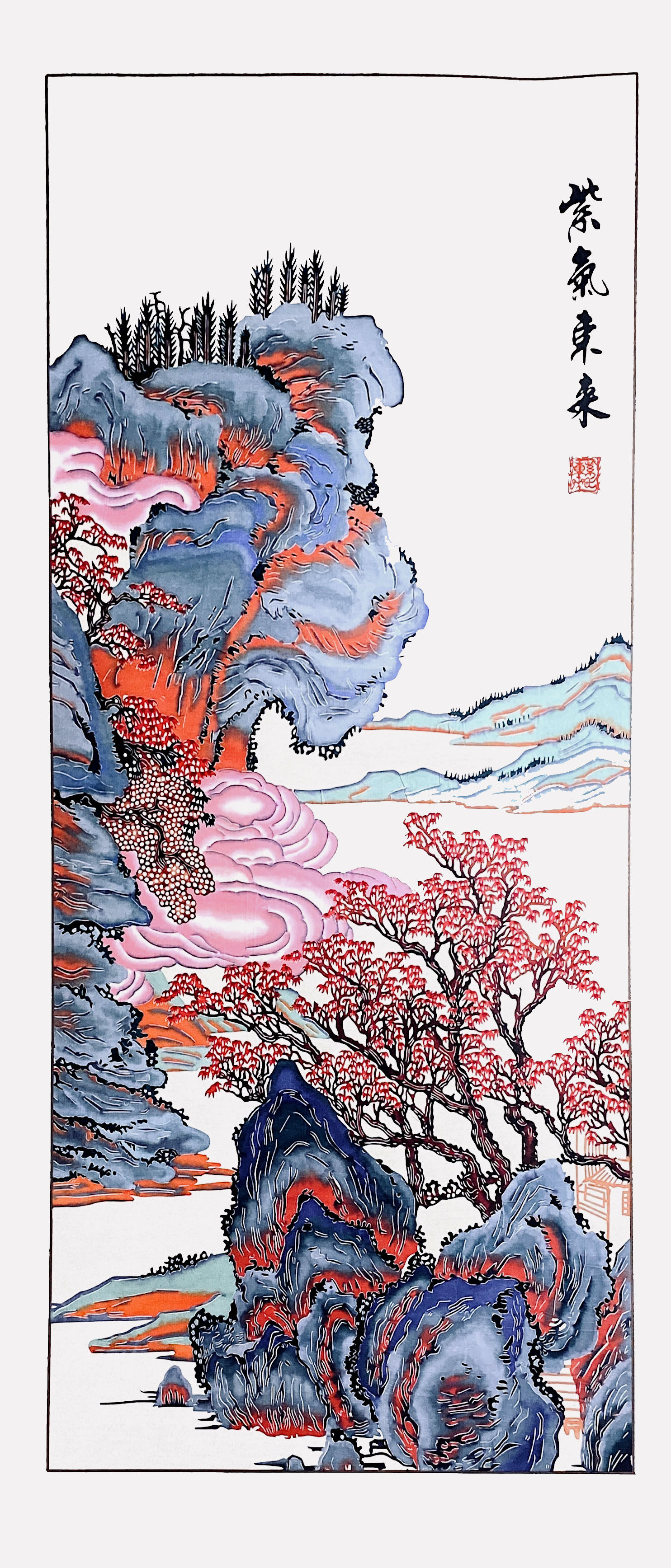 (Fuzhiyah) Chinese characteristics paper-cut purple East hanging scroll Handicraft gifts New Year Home decoration pendant