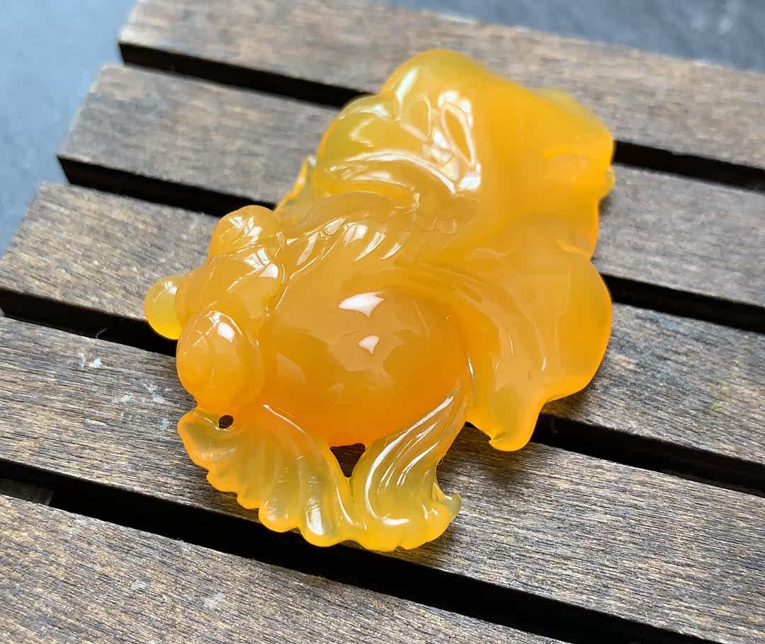 Natural jade yellow dragon jade monarch gold fish pendant ice seed old stock necklace pendant for more than two years