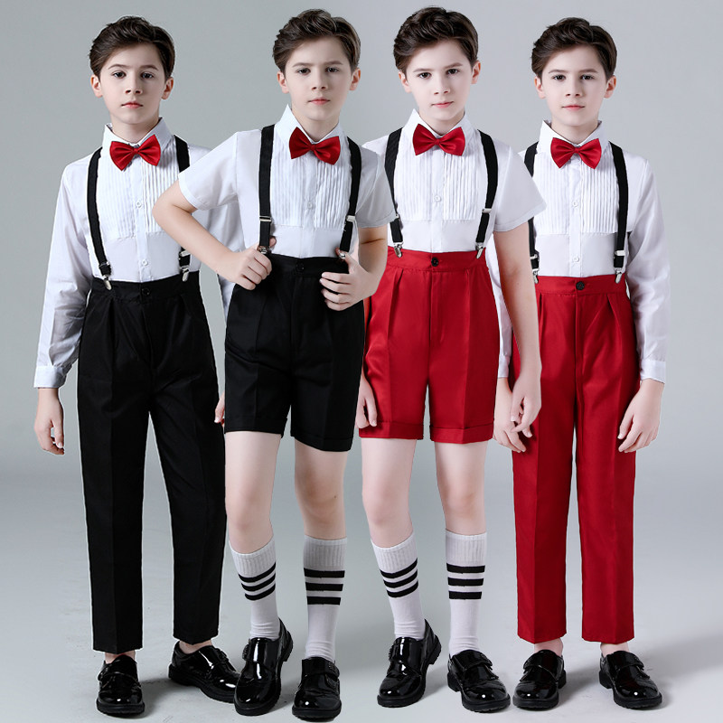 A full set of black women's short-sleeved trousers A full set of black men's long-sleeved trousers A full set of red men's short-sleeved shorts A full set of red men's long-sleeved trousers A full set of black women's long-sleeved trousers Small leather shoes (remark size when ordering