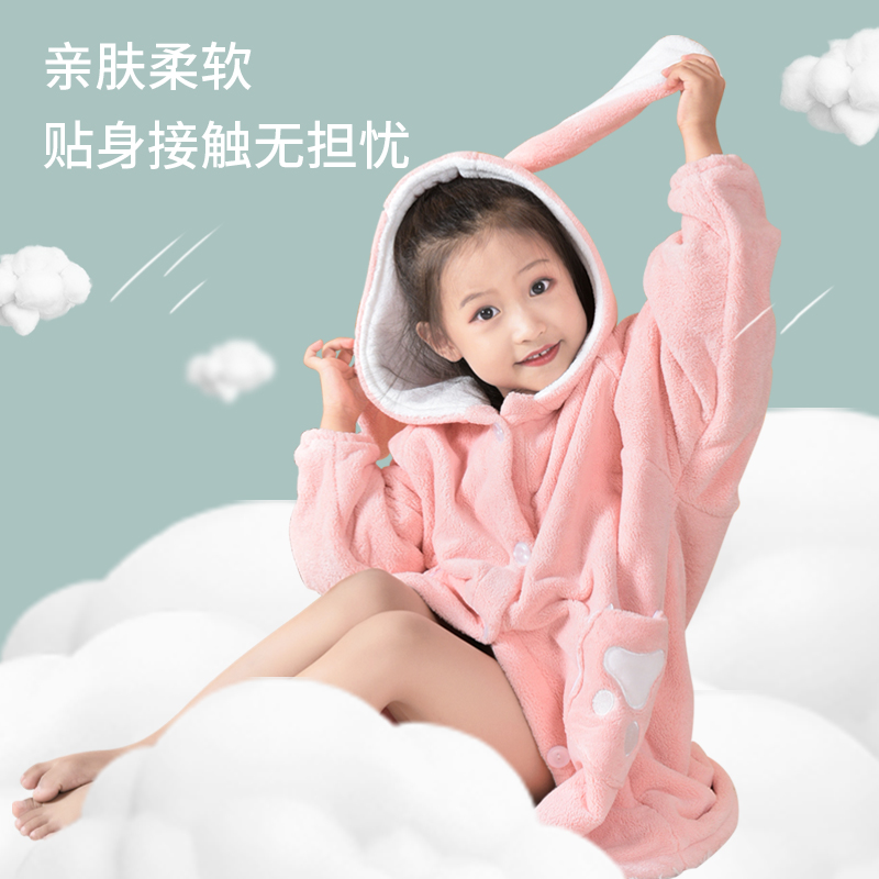 Children's bathrobe Winter thick can wear hooded baby bath towel than pure cotton absorbent bath men and women in large children's nightgown