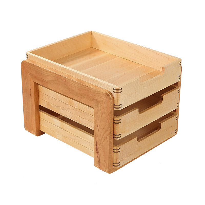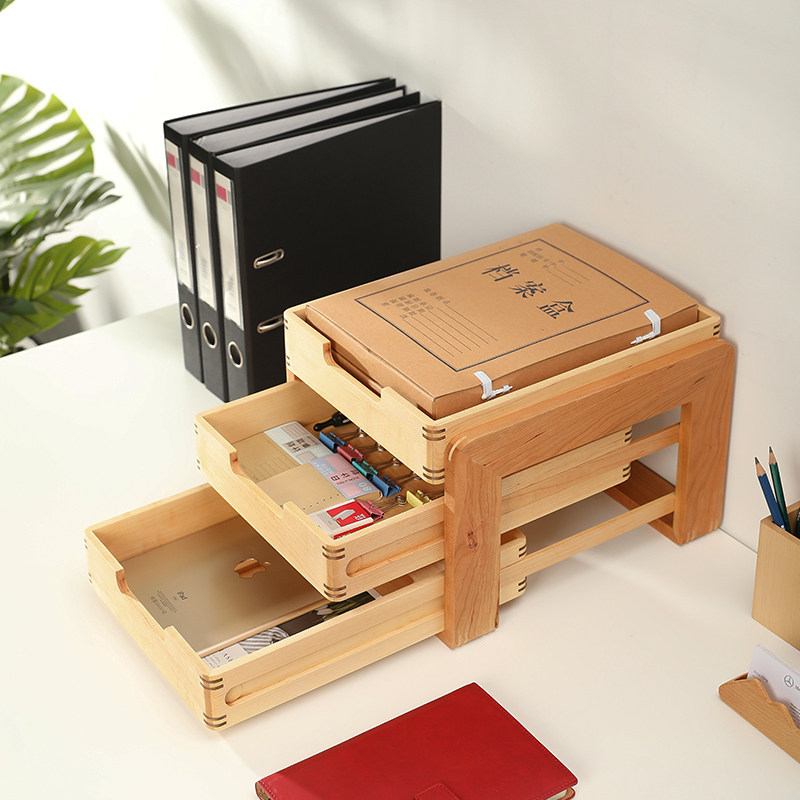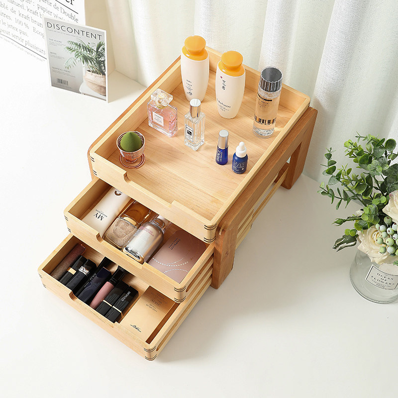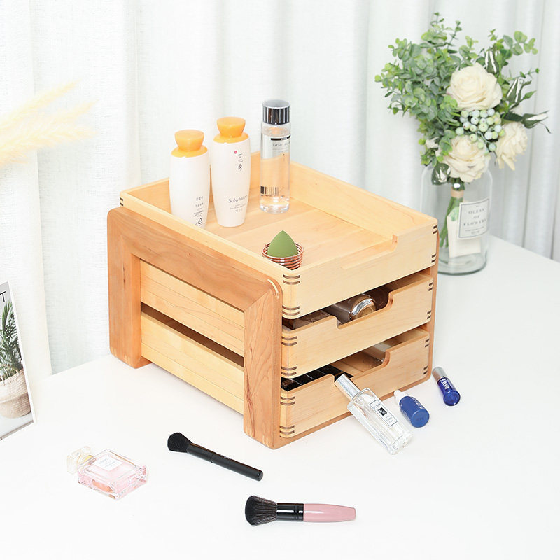 Cosmetic Storage Box Table Top Drawer Large Capacity Creative Solid Wood Multilayer Office Document Debris Storage Box
