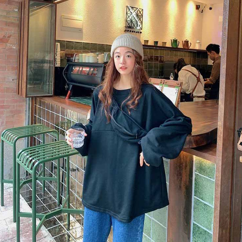 Eurie grand size necropstick women's spring and autumn slim 2020's new loose, lazy breeze with long version of blouses overfire
