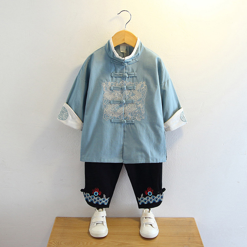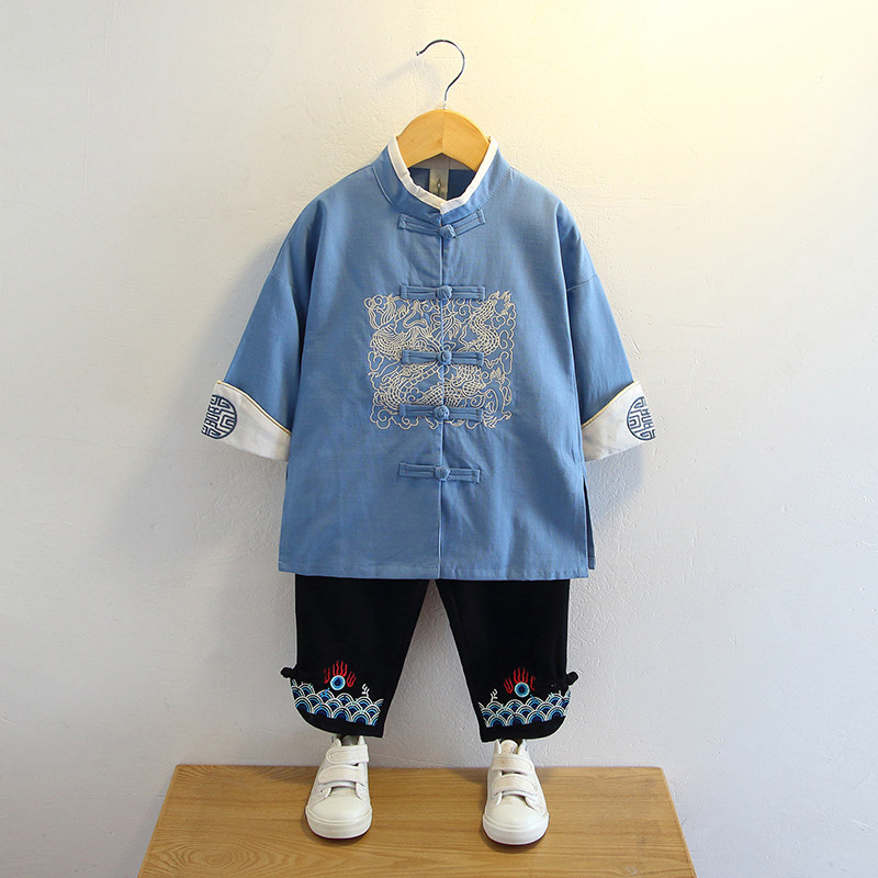 Boy Hanfu 2 Chinese style 3 Long sleeve 4 Spring dress 5 Ancient costume 6-year-old boy Chinese clothing Spring and autumn children's Tang dress 7