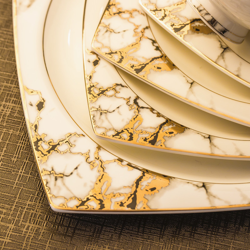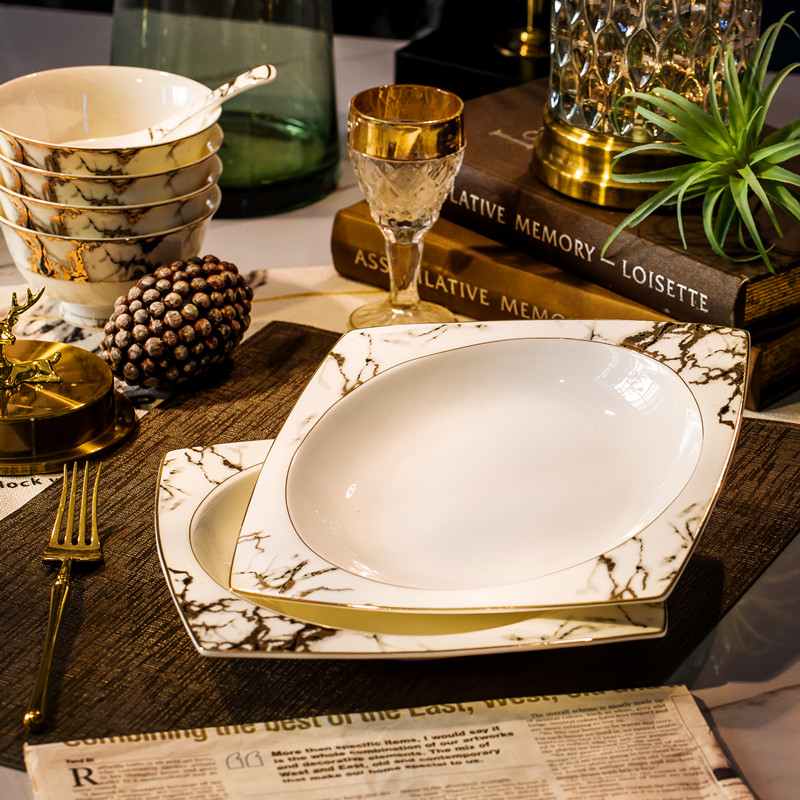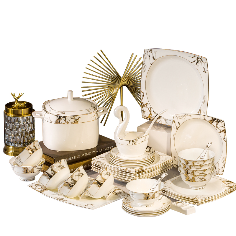 Luxury bone china tableware set Jingdezhen high-grade ceramics dishes set home European gold edge bowl set