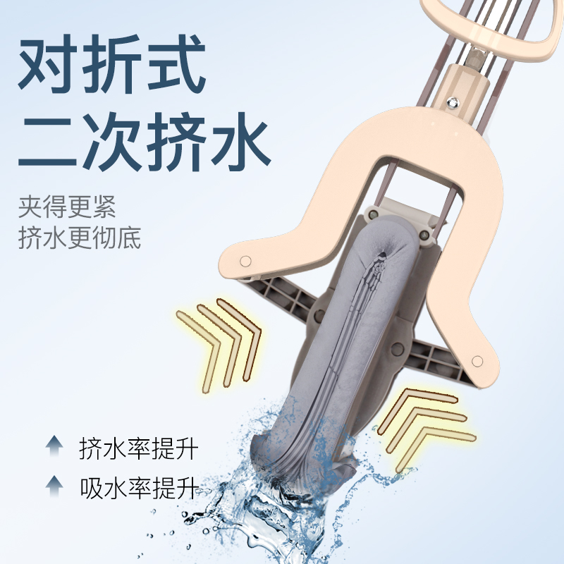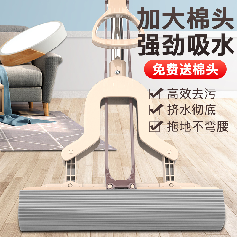Water-absorbing glue cotton mop Household hand-free washing Folding squeeze water retractable one drag lazy artifact Dry and wet dual-use net