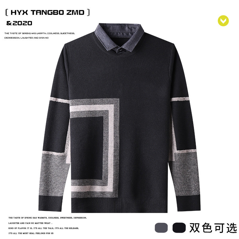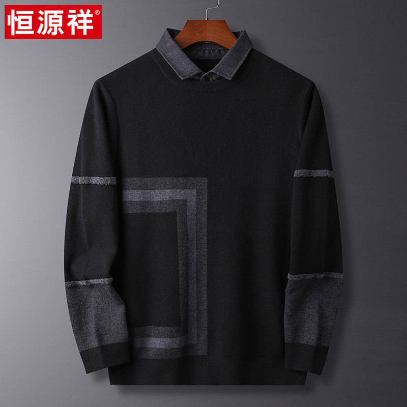 Hengyuan Xiang fake two knit sleeves hooded sweatshirt 2021 Chunqiu New products middle-aged men's business thickened with wool sweater