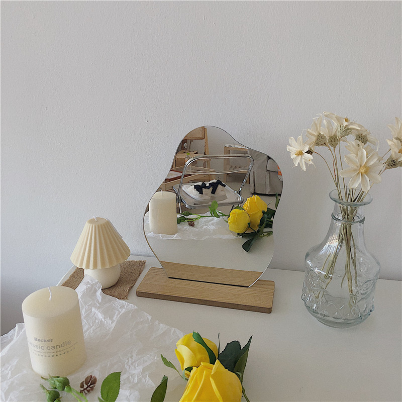Korean ins simple niche irregular mirror dormitory desktop wooden makeup mirror special-shaped decorative photo props