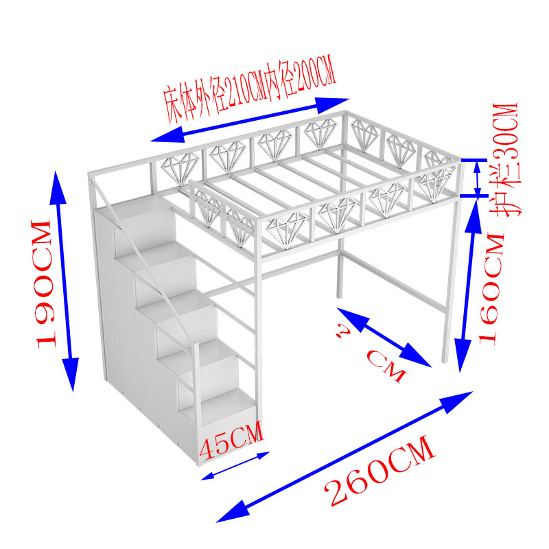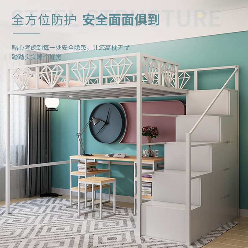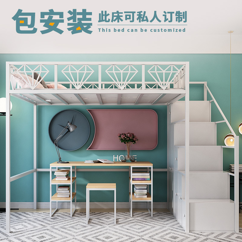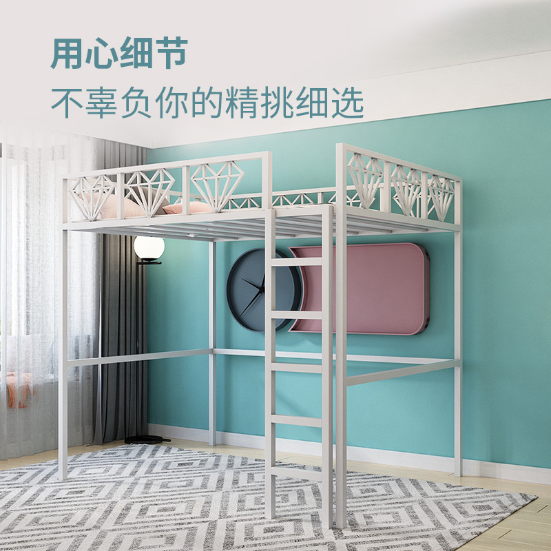 Nordic Iron Art Elevated Bed Linen Upper Bed Province Space Small Household Type High And Low Rack Cabinet Loft Style Brief Modern Bed-Taobao