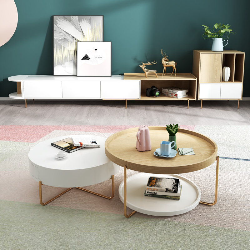 Small round tea table big round tea table size round tea table combination TV cabinet side cabinet TV cabinet edge cabinet tea table combination TV cabinet side cabinet list of notes ABC