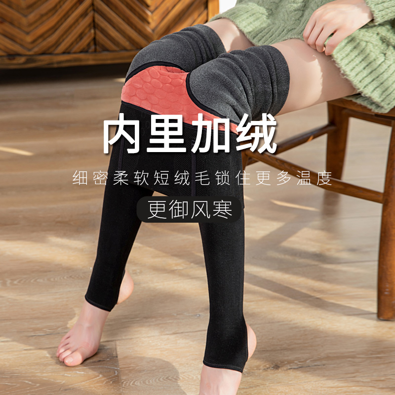 High waist pants autumn and winter gray thick wool pants plus velvet warm abdomen sanitary pants women wear large size cotton pantyhose