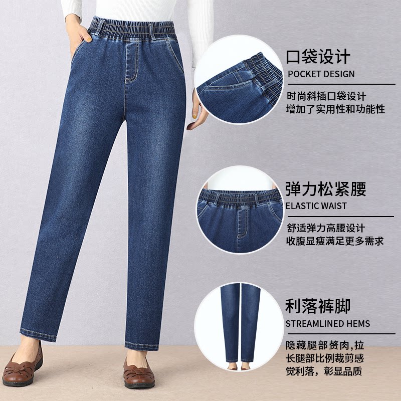 Mom jeans women in their 40s and 50s elastic waist middle-aged spring and autumn season 2021 new high-waisted Harun Luo radish pants