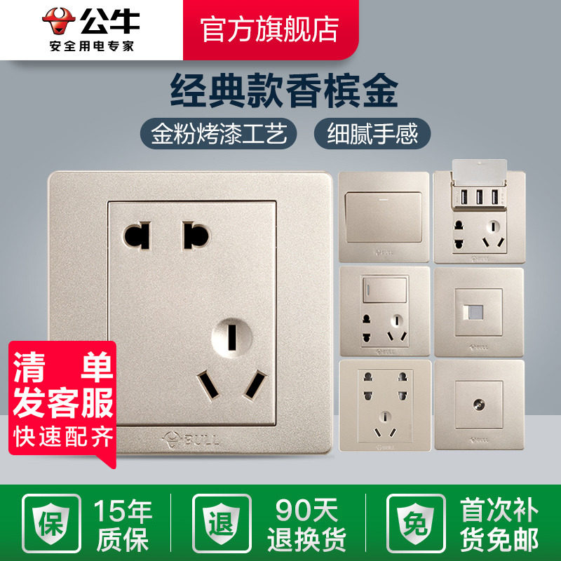 The 5A 5-hole socket 10A slanted five-hole socket 10A30W fast-charged five-hole socket three USB five-hole socket single open single one-controlled switch one open double control switch