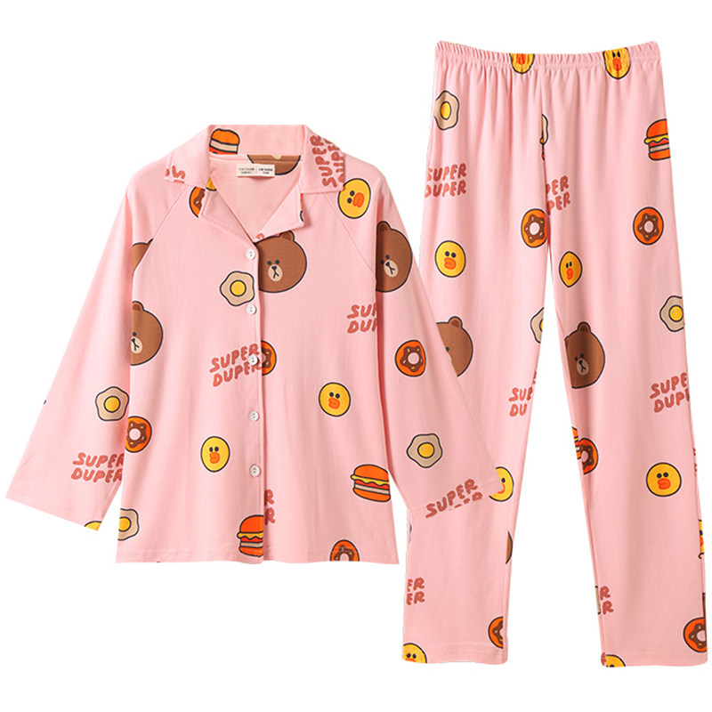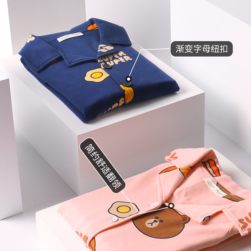 Finten Spring Autumn Long Sleeve Lovers Sleepwear Women's Pure Cotton Korea Brown Bear Cartoon Cardio-hoodie Suits Men's Two Style Suits