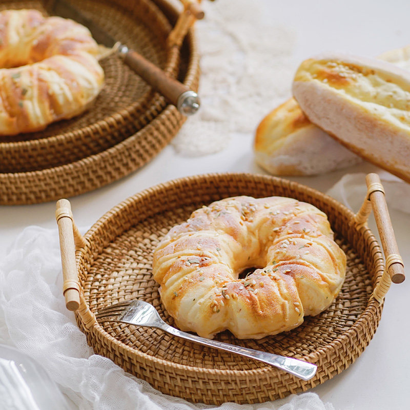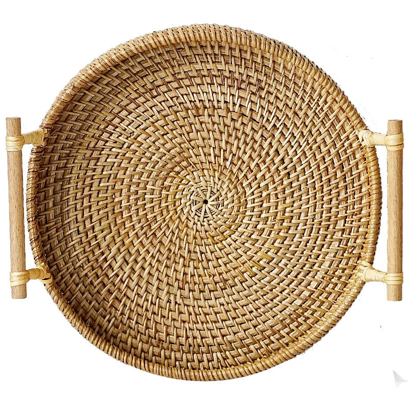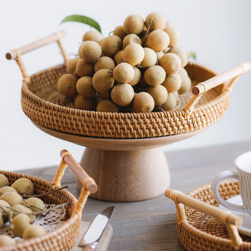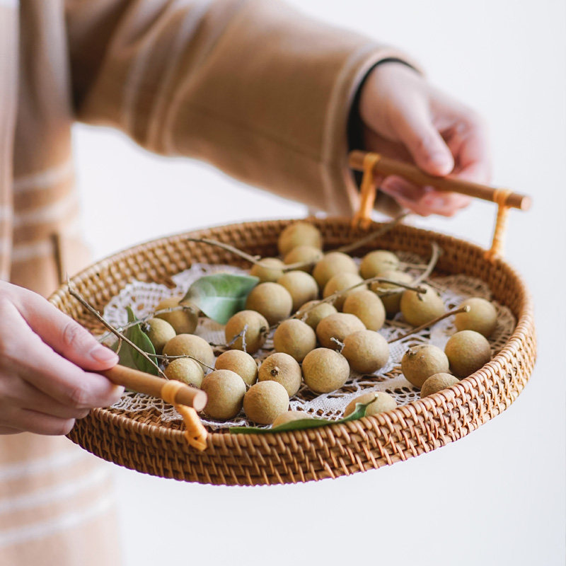 Japan-style Vietnamese rattan chic-set round-ear fruit pan tea tray tea tray Silent Wind Tea Table Decoration Pendulum gourmet Gourmet Photography Props