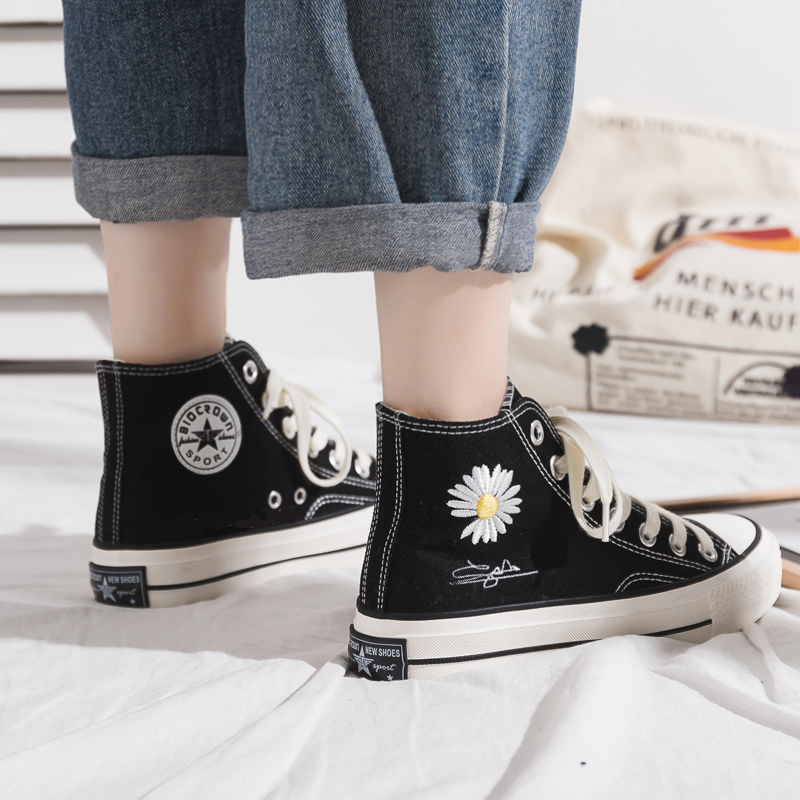 Flat-bottomed white printing 2022 small daisy canvas shoes women's spring and autumn high-top board shoes large size new 43-1