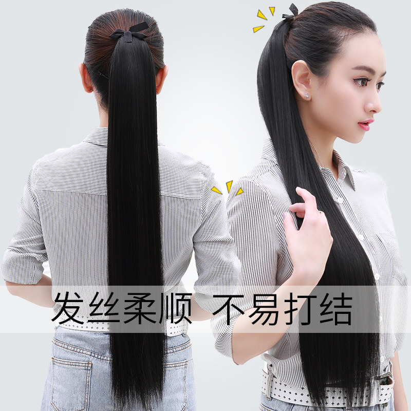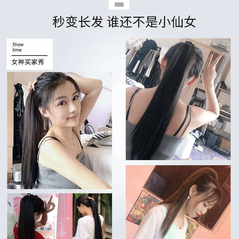 Horsetail Wig Woman Long Hair Long Straight Hair Tied Belt Grip Simulation Hairnet Red High And Low Braid Hair Piece Short Wig Tail