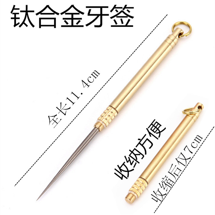 Brass titanium alloy all-in-one toothpick Tooth Divine Instrumental Multifunctional Fruit Sign portable with portable and convenient