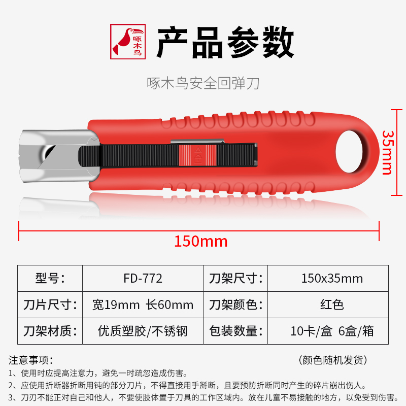 Woodpecker safety rebound knife FD-772 automatic rebound out of the box knife trapezoidal multifunctional cutting plastic utility knife