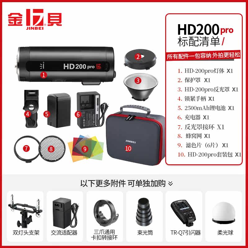 Jinbei HD200Pro outdoor flash studio photography light Lithium battery indoor and outdoor dual-use flash