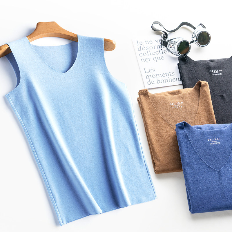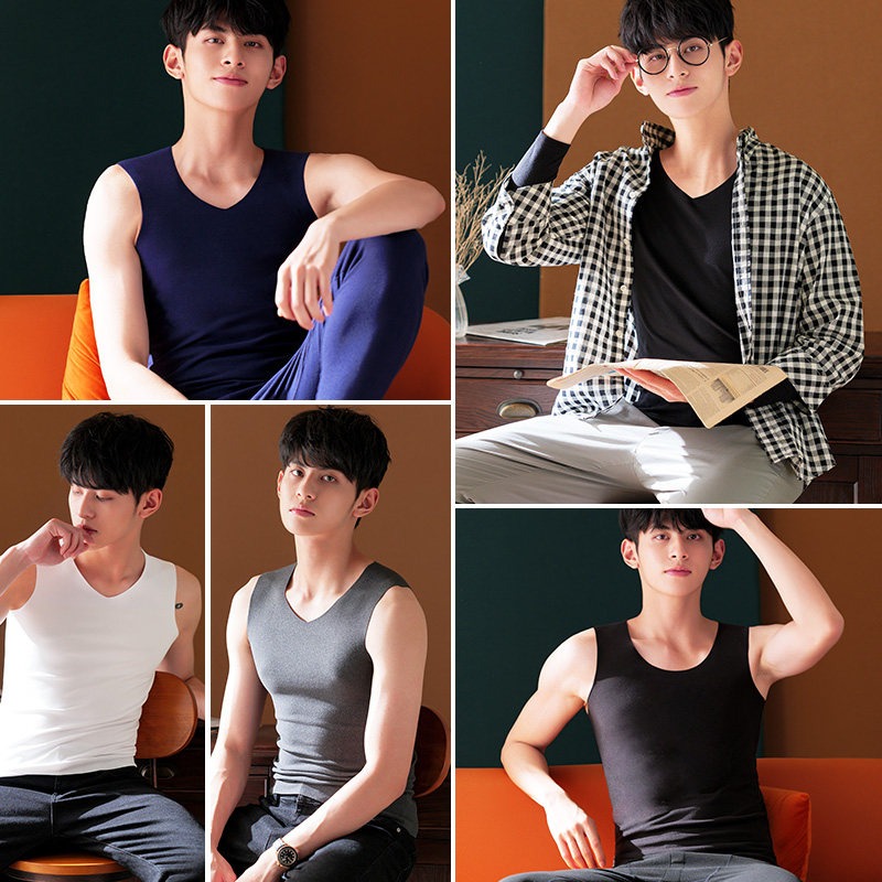 Men's traceless warm vest thickened with velvety teen inside wearing beating bottom sleeveless vest Fever Lingerie Tide