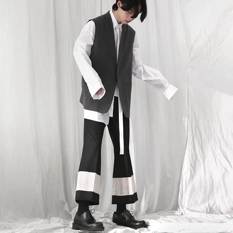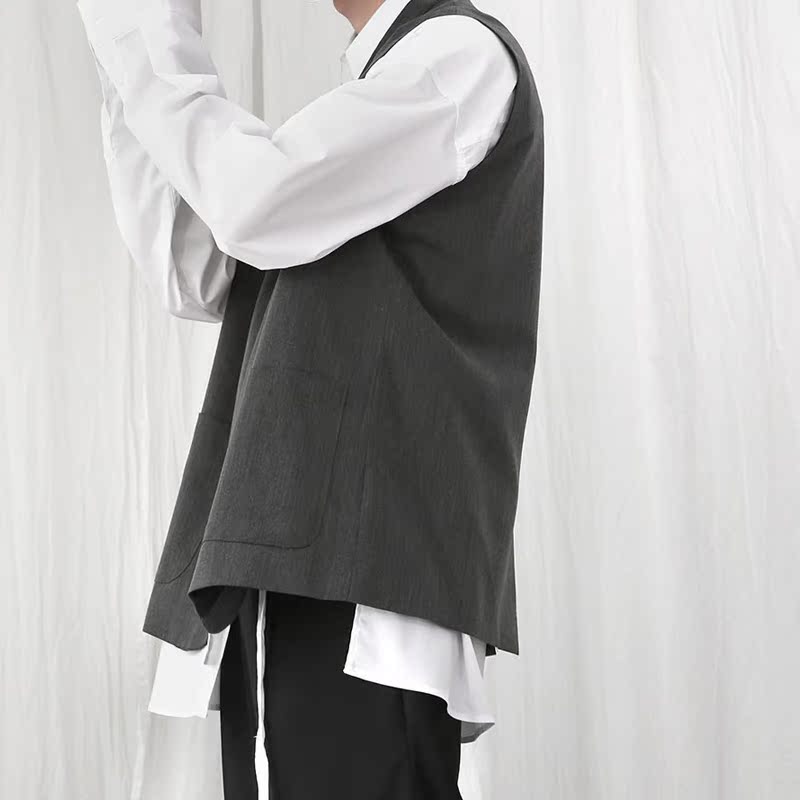 autumn vintage light ripe style suit pullover vest men's trendy outerwear sleeveless V-neck loose camisole shaped vest