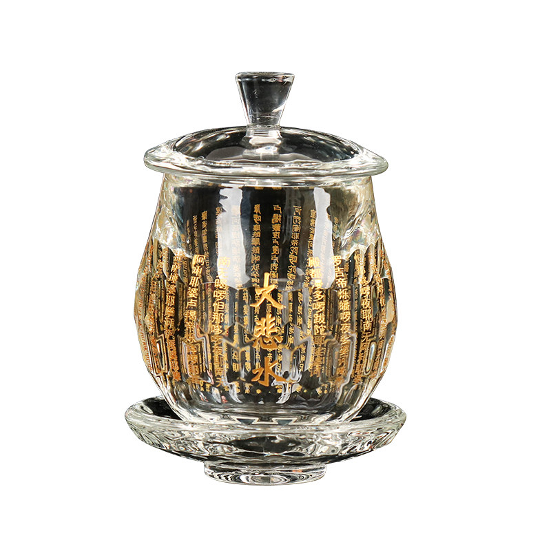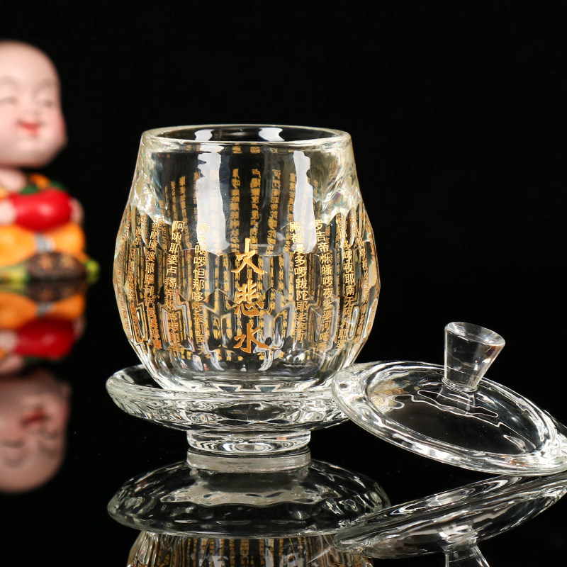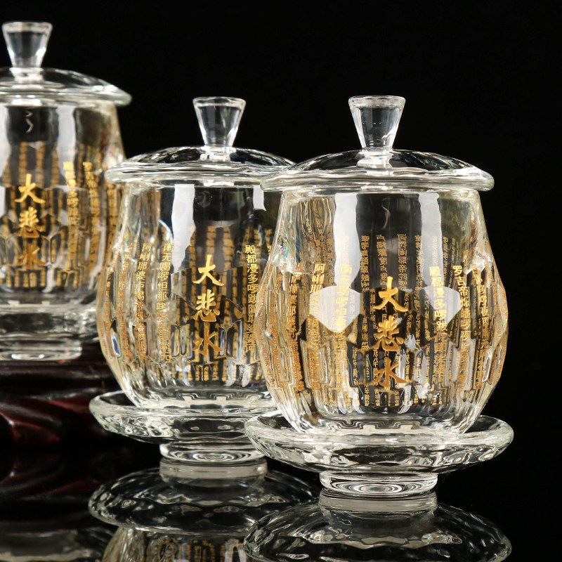Offering cup white crystal transparent holy water cup Great Compassion water crystal lotus for Buddha Guanyin water supply cup Buddhist hall supplies tribute cup